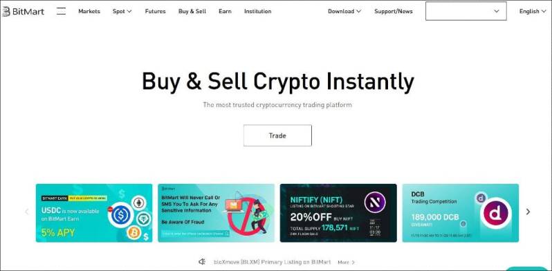 BitMart - The most trusted cryptocurrency trading platform which provides real-time trading services, including Bitcoin (BTC), Ethereum (ETH), and Tether (USDT) trading. A highly-secured trading platform with over 1000+ quality trading pairs, real-time trading service, ongoing trading competitions, and 24/7 global customer support.